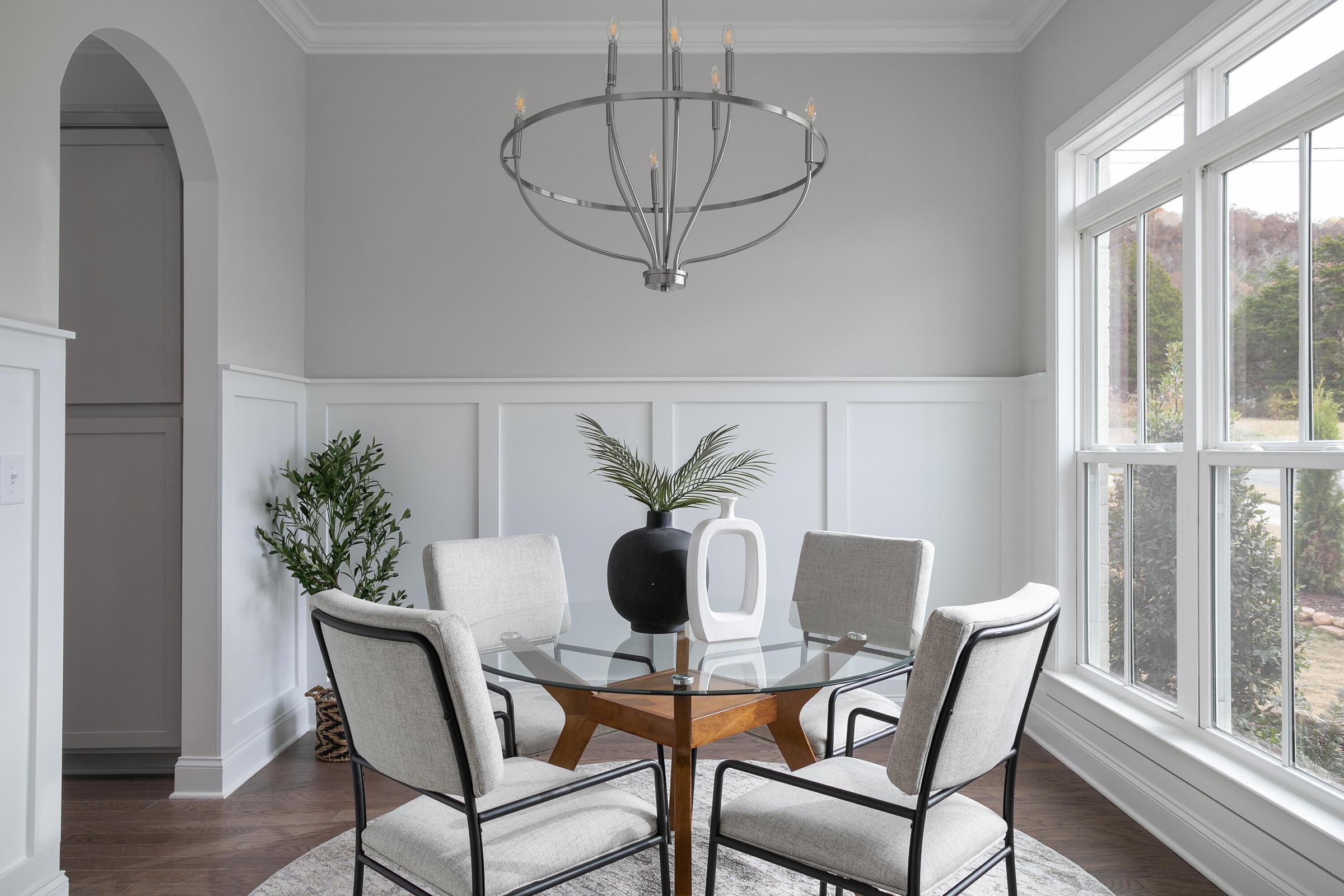 The dining room features classic wainscoting and connects effortlessly to a chef-inspired kitchen equipped with: